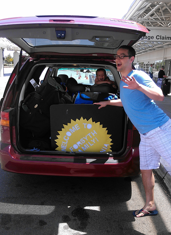 The first 10 days here we (me and the 3 boys) were living on air mattresses in an empty house. Christina and Aria did an incredible job setting us up though. Aria, Walter, Luca, Enzo and Chiara all met us at the airport as we walked off the plane and toward baggage claim. They were waiting at the bottom of the escalator. I really didn’t expect them all to be there, so it was a total surprise and they were holding a huge sun sign that said “Welcome to California Forsyths!” My boys and Aria’s boys were so excited and I was so emotionally exhausted from the previous week of leaving MI stuff and then a long full day flight with all the boys alone that I just wept when I saw them all there. I felt like I was really coming home. I wouldn’t have to leave again. It wasn’t like Christmas or vacation. I was here and they were here and I could enjoy it and live it. Just a rush of emotion.