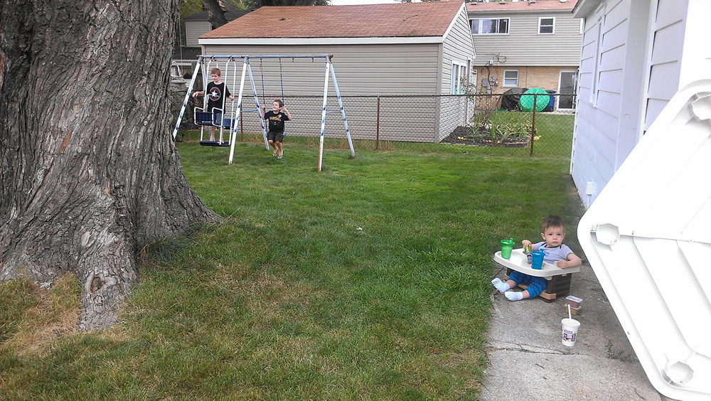 Yes. There have been zillions of ants. On day 3 here we looked out at the back porch in the morning and there were about 12 thick lines of ants marching into the base of our house. Liam summed it up well when he leaned his head against the glass sliding door and said, “we got a big pwob-wem (problem)”.
