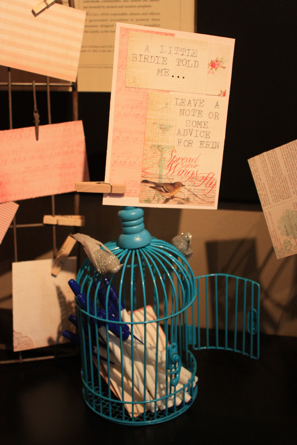 Then there was the other area with the favors, branches and birdcages to leave advice on:
